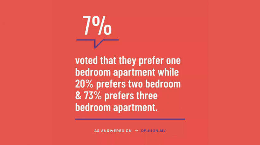 In a poll conducted by Maldives Opinion Network, it was surveyed among 2000 people whether they preferred a one-bedroom, two-bedroom or three-bedroom apartment.