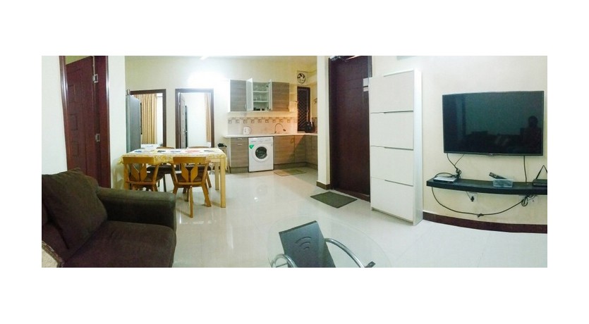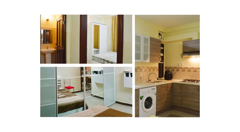 Kitchen cabinets, Stove, Fridge, Microwave (combi) oven, Air Fryer, Washing Machine, Dining table, Dinner sets, Sofa set, 3D Smart TV, Cable TV, Internet.